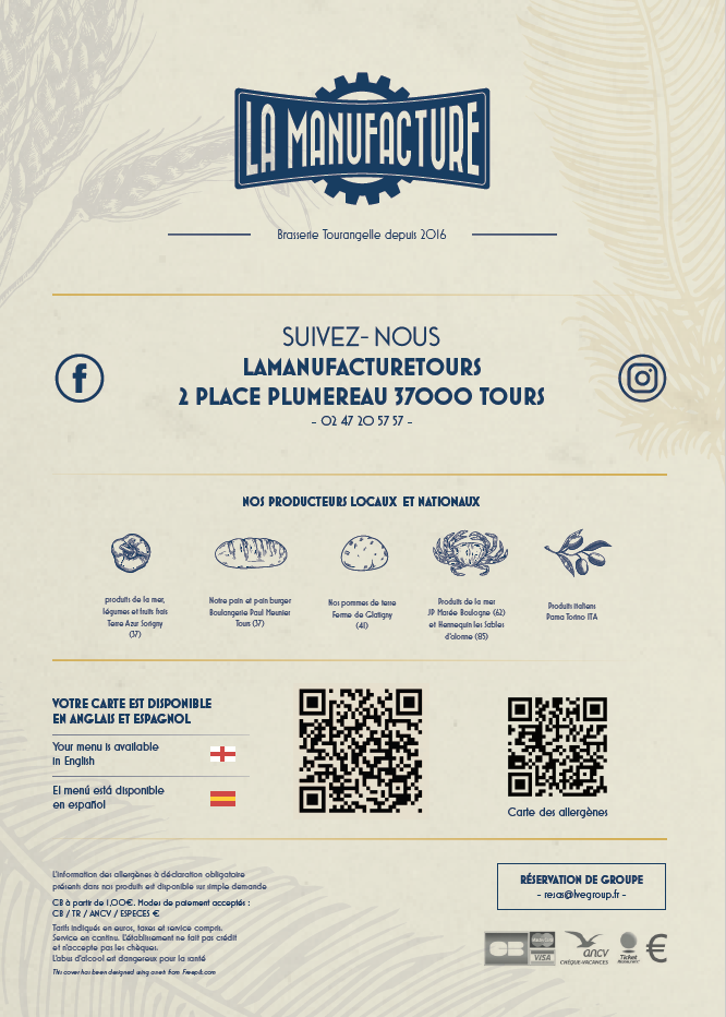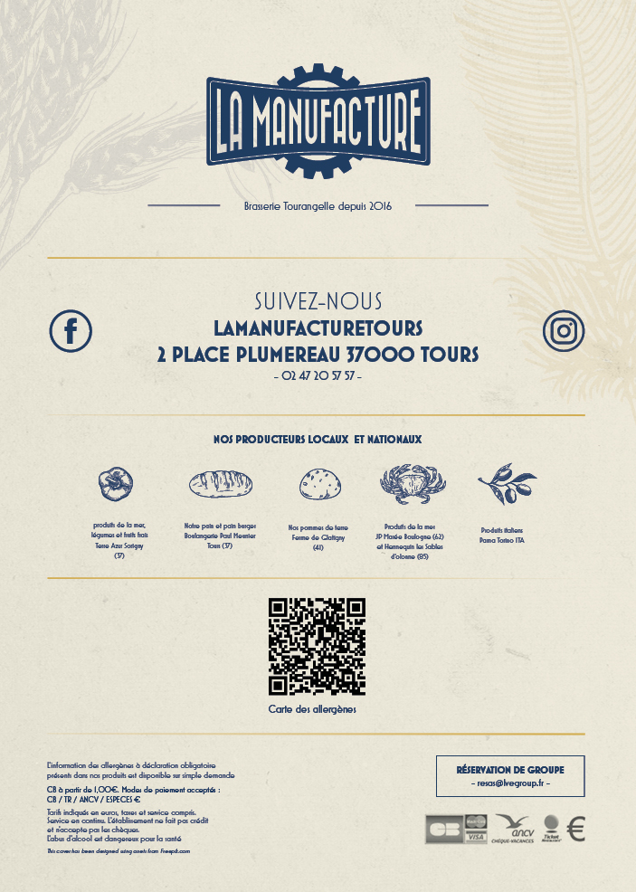 Ouvert 7j/7, de 12h à 23h, toute l’équipe de La Manufacture se propose de vous accueillir, en