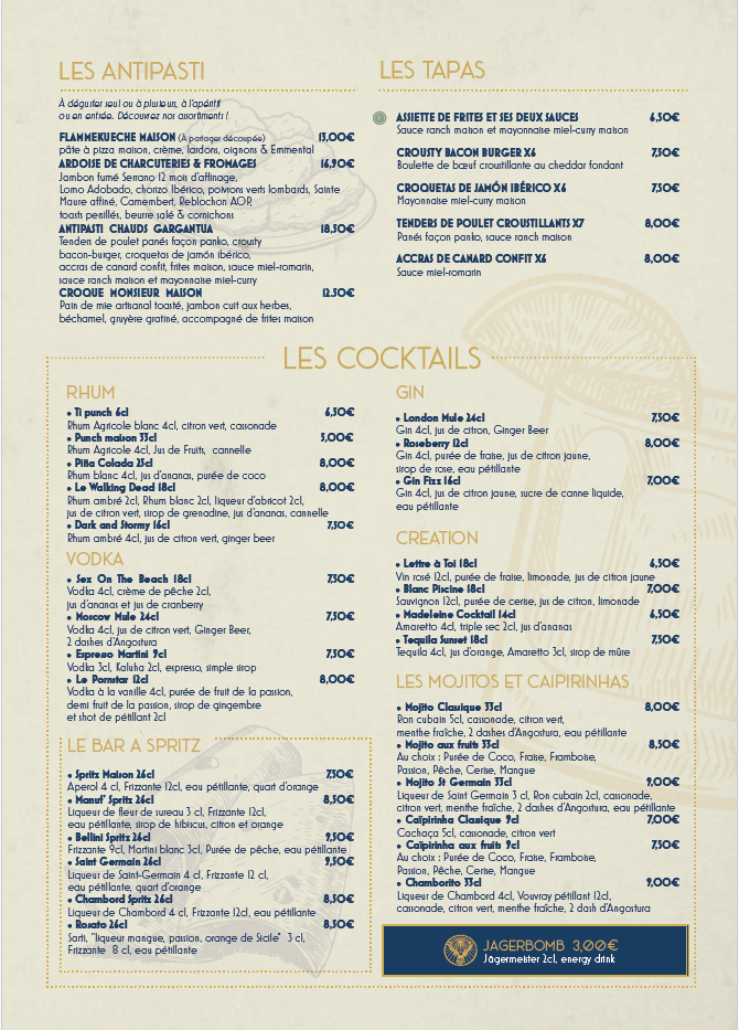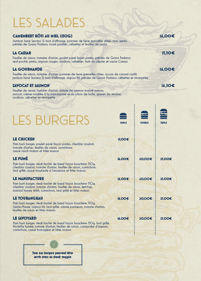 décoration atypique et originale vous propose une cuisine maison préparée minute : entrées généreuses, salades copieuses, viandes de gôut, pizzas de qualité et burgers de caractère !